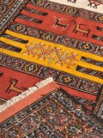 Yolluk ya da ofis masası önüne güzel durabilecek ufak model dokunmuş bir kilimdir. Renkleri uyumlu yünde kullanılan boyalar kök boyasıdır.