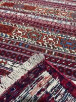 El dokuması halı ve kilimlerin uç kısımlarındaki püsküllerin uzunlukları eşit olmayabilmektedir. Görsellerin düzenlenmesi sırasında arka plan silme işlemlerinden dolayı uç püsküller tamamıyla görünmüyor olabilir.